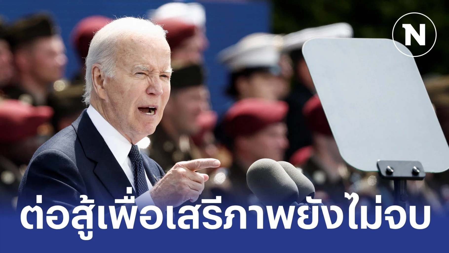 ประธานาธิบดี ไบเดน กล่าวสุนทรพจน์ที่สุสานอเมริกัน โดยเปรียบเทียบว่า การต่อสู้ของยูเครนเพื่อขับไล่การรุกรานของรัสเซียเหมือนกับการต่อสู้เพื่อเสรีภาพในวันดีเดย์ และเป็นส่วนหนึ่งของการต่อสู้ระหว่างเผด็จการและเสรีภาพที่ยังไม่สิ้นสุด พร้อมกับให้คำมั่นว่า องค์การนาโต และแนวร่วมกว่า 50 ประเทศ จะยังยืนหยัดเคียงข้างยูเครน