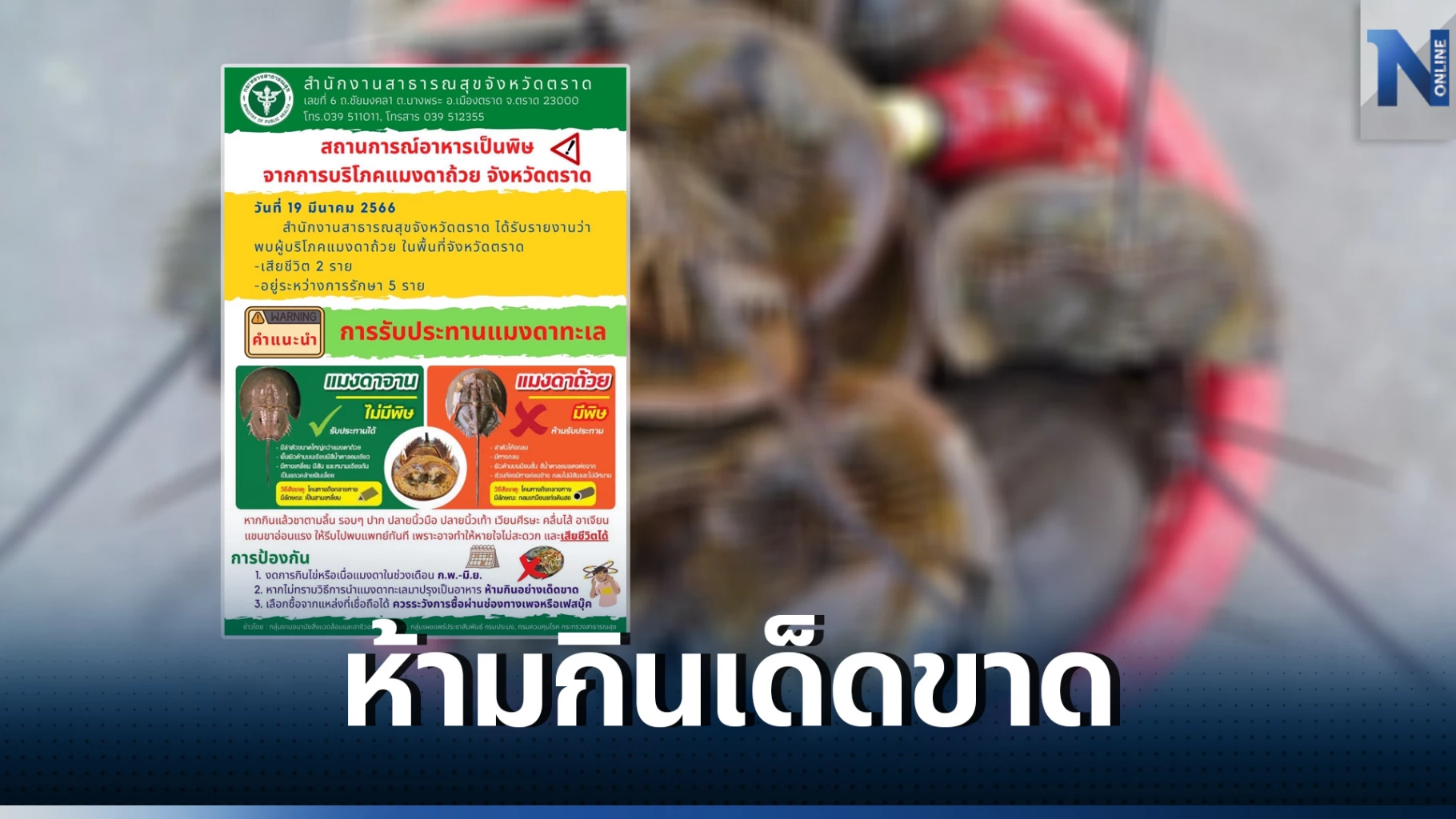 20 มีนาคม 2566 สำนักงานสาธารณสุขจังหวัดตราด ได้รับรายงานมีผู้รับประทานแมงดาถ้วย ในพื้นที่จังหวัดตราด ทำให้มีผู้เสียชีวิตจากการรับประทานแมงดาถ้วย 2 คน อยู่ระหว่างการรักษา 5 คน