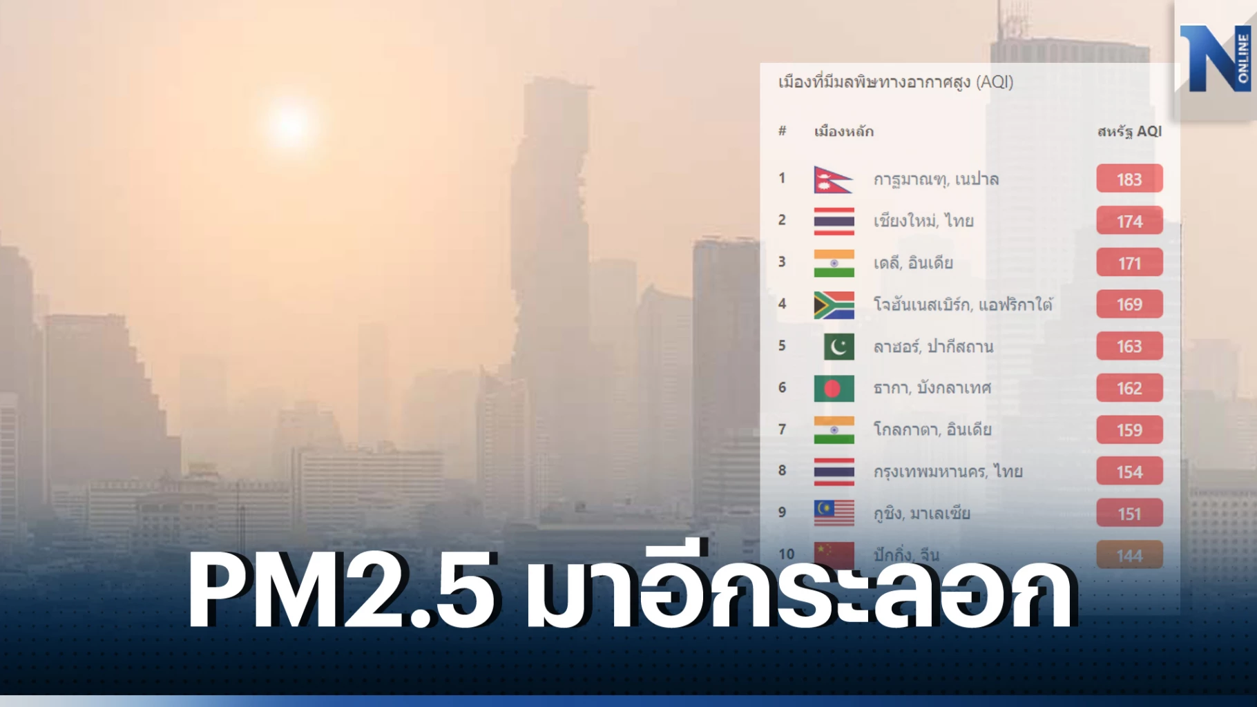 ฝุ่นพิษ"PM2.5"มาอีกระลอก แจ้งพท.เสี่ยง"เชียงใหม่-กทม." ติด TOP 10 มลพิษโลก