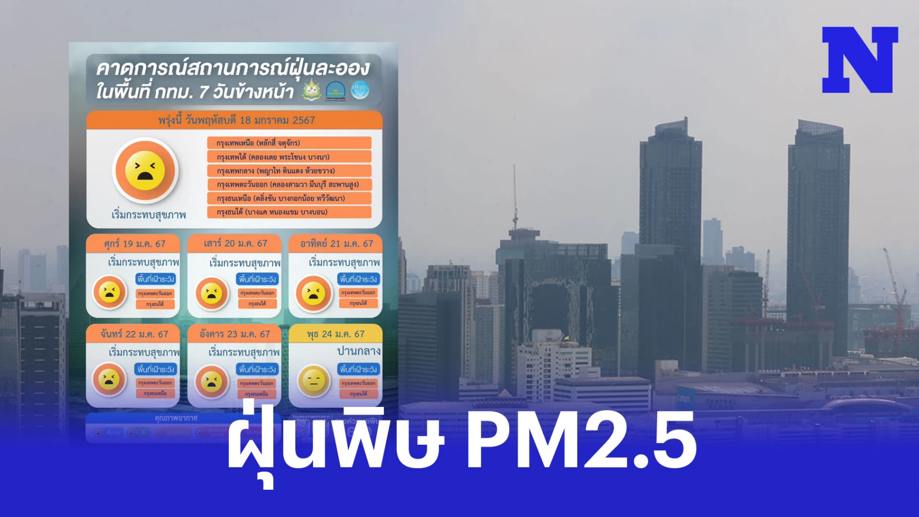 คาดการณ์สถานการณ์ฝุ่นละออง PM2.5 ในพื้นที่ กทม. 7 วันข้างหน้า (18-24 ม.ค.) เป็นดังนี้