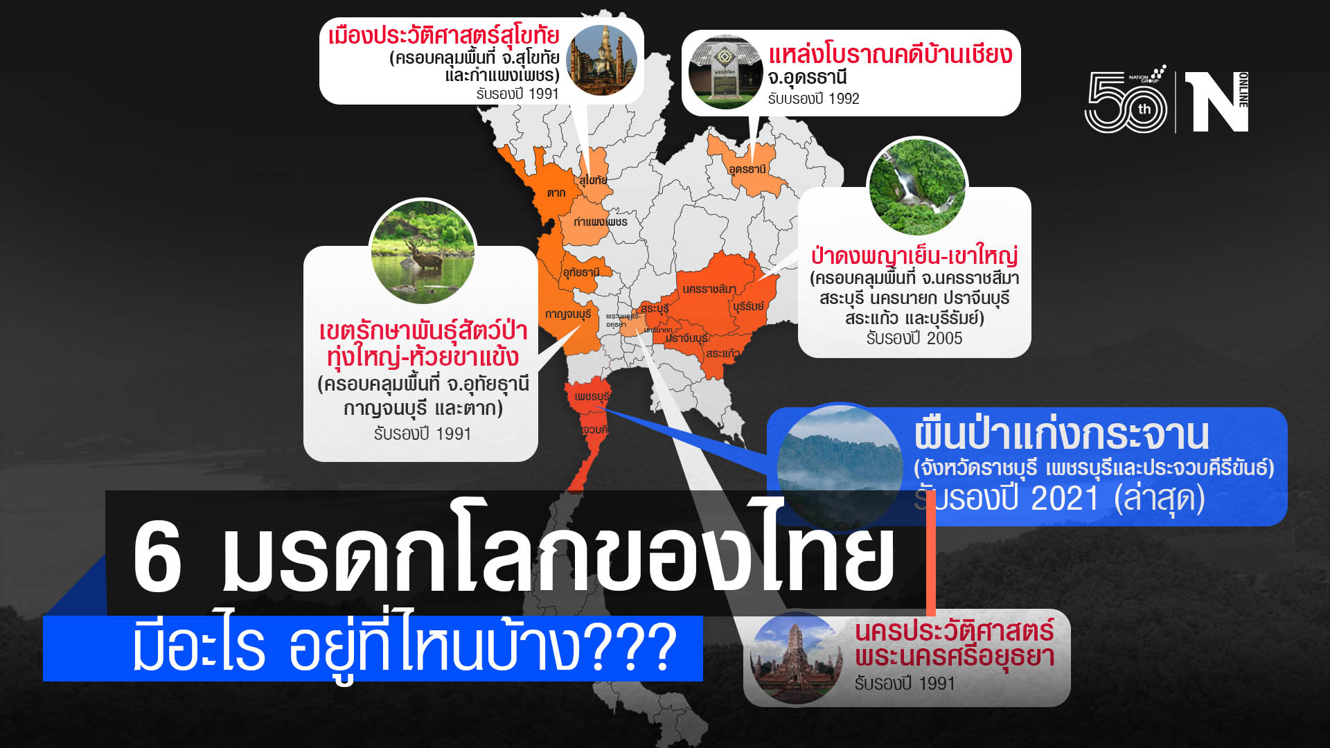 กระทั่งเราทราบข่าวดีเมื่อช่วงเย็นวันนี้ คณะกรรมการมรดกโลก ประกาศรับรองให้ “กลุ่มป่าแก่งกระจาน” เป็นมรดกโลกแล้ว ถือเป็นมรดกโลกลำดับที่ 6 ของไทย ดังนั้นวันนี้ เราจะพาไปทำความรู้จัดกับมรดกโลกของไทยทั้งหมดมีอะไรกันบ้าง ประกอบด้วย
