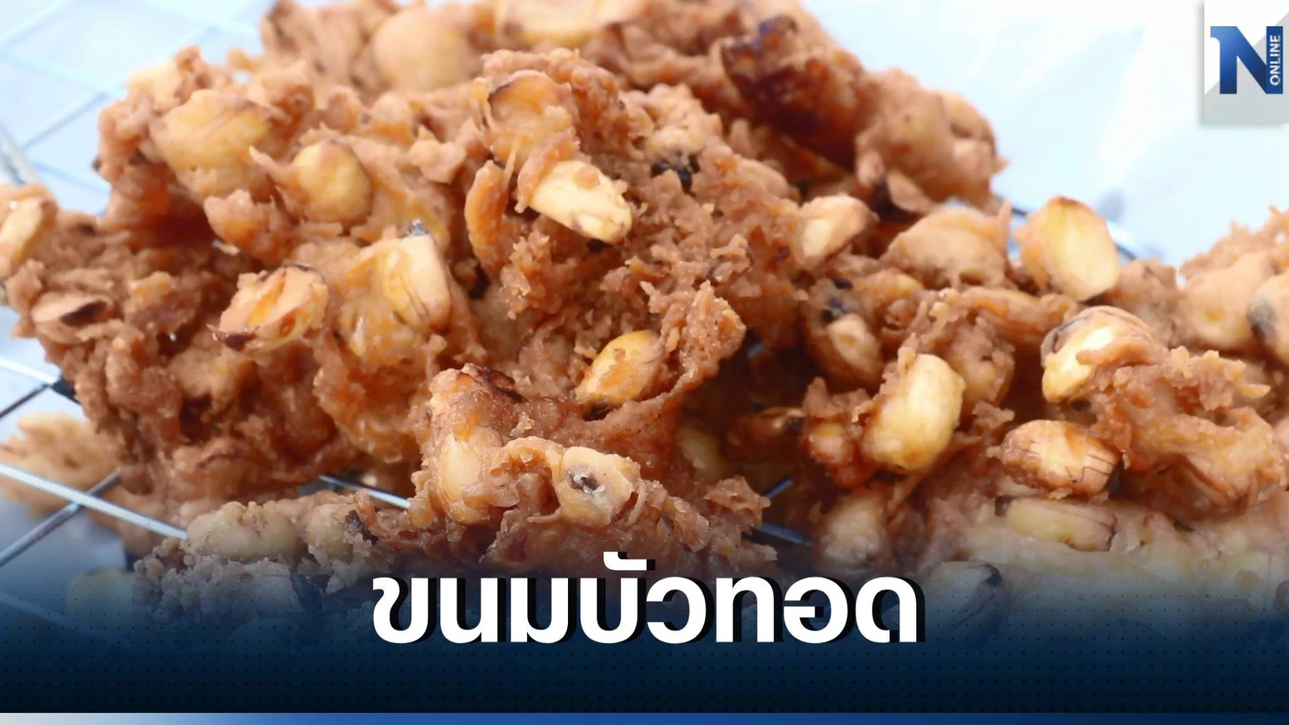 ซึ่งการทำขนมบัวทอด ส่วนผสม เหมือนกับ การทำกล้วยทอด ที่มีแป้ง น้ำตาลทราย เกลือ มะพร้าว โดยเริ่มจากทำการผสมแป้ง น้ำเปล่า น้ำตาลทราย เกลือ มะพร้าว ผสมลงไปให้เข้ากัน จากนั้น นำเมล็ดบัว ที่ปลอกเปลือกแล้ว มาผสมชุบแป้ง ทอดในน้ำมันที่ร้อน ใช้เวลา ประมาณ 10 นาที จนกลายเป็นสีเหลืองกรอบ และ วางจำหน่าย ในราคาถุงละ 35 บาท