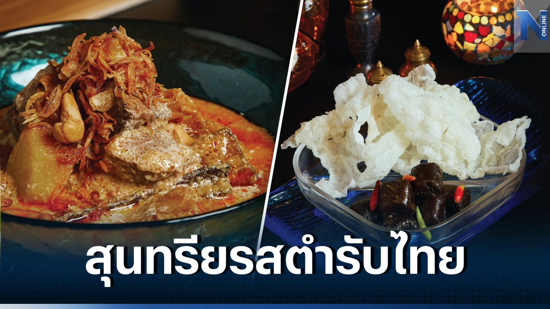 นับกว่า 100 เมนูที่ถูกรังสรรค์ขึ้นล้วนมาจากตำราที่บันทึกสูตรอาหารโบราณ หนังสือประวัติศาสตร์รวมหลายร้อยเล่ม การเยี่ยมชม สัมภาษณ์ผู้อาวุโสในวงการอาหาร ตลอดจนการเดินทางไปยังพิพิธภัณฑ์ วัด วัง และห้องสมุด เพื่อสืบเสาะถึงรากเหง้าแก่นแท้ของอาหารไทยแบบไม่ผิดเพี้ยน ก่อนรวบรวมเป็นเมนูที่จะพาทุกคนสู่การย้อนเวลากลับไปสัมผัสกับอดีตและเรื่องราวอันน่าอภิรมย์ของรสชาติตำรับไทยในกาลก่อน ภายใต้บรรยากาศร้านที่ตกแต่งอย่างหรูหราด้วยเฟอร์นิเจอร์สไตล์วินเทจ ผสานอิทธิพลของตะวันตกที่เข้ามาสู่ไทยในยุคนั้น ประดับประดาด้วยนาฬิกาโบราณ และพระบรมฉายาสาทิสลักษณ์ของพระบาทสมเด็จพระจุลจอมเกล้าเจ้าอยู่หัว