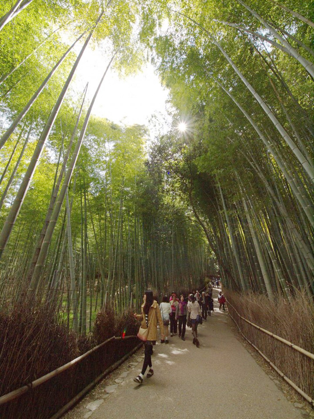 จุดที่สวยที่สุดของทางเดินเลียบป่าไผ่นี้จะไม่ได้อยู่ในช่วงแรกของเส้นทาง แต่จะอยู่หลังจากเลยทางเข้าวัด Tenryuji เป็นต้นไป ทิวไผ่ที่มีระยะห่างระหว่างกันพอสมควรจะแปรเปลี่ยนเป็นแน่นขนัดเรียงกันอย่างสวยงาม