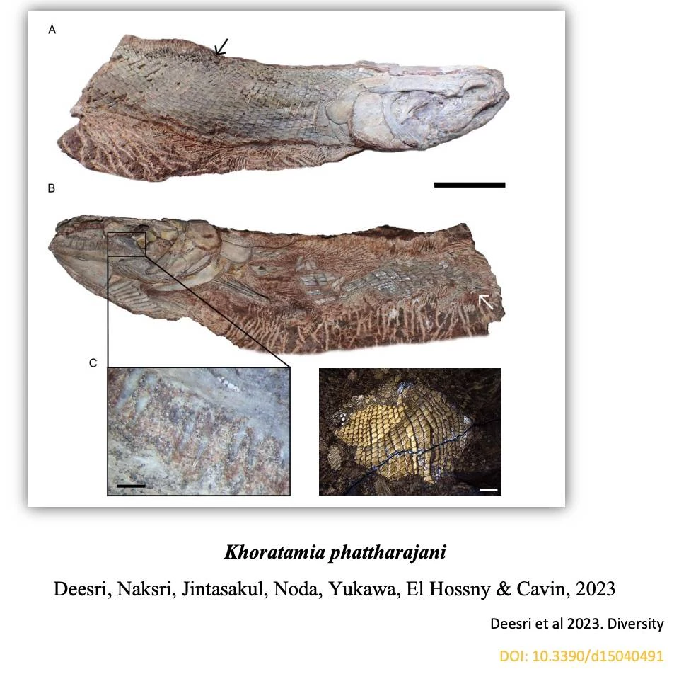 ผศ.ดร.ประเทือง จินตสกุล ผู้อำนวยการอุทยานธรณีโคราช เปิดเผยว่า คณะนักวิจับได้ค้นพบ ฟอสซิลปลาอายุ 115 ล้านปี พันธุ์ใหม่ของโลก ในแหล่งขุดค้นไดโนเสาร์ ที่บ้านโกรกเดือนห้า ต.สุรนารี อ.เมือง ซึ่งเป็นหมู่บ้าน ที่ตั้งพิพิธภัณฑ์ไม้กลายเป็นหิน