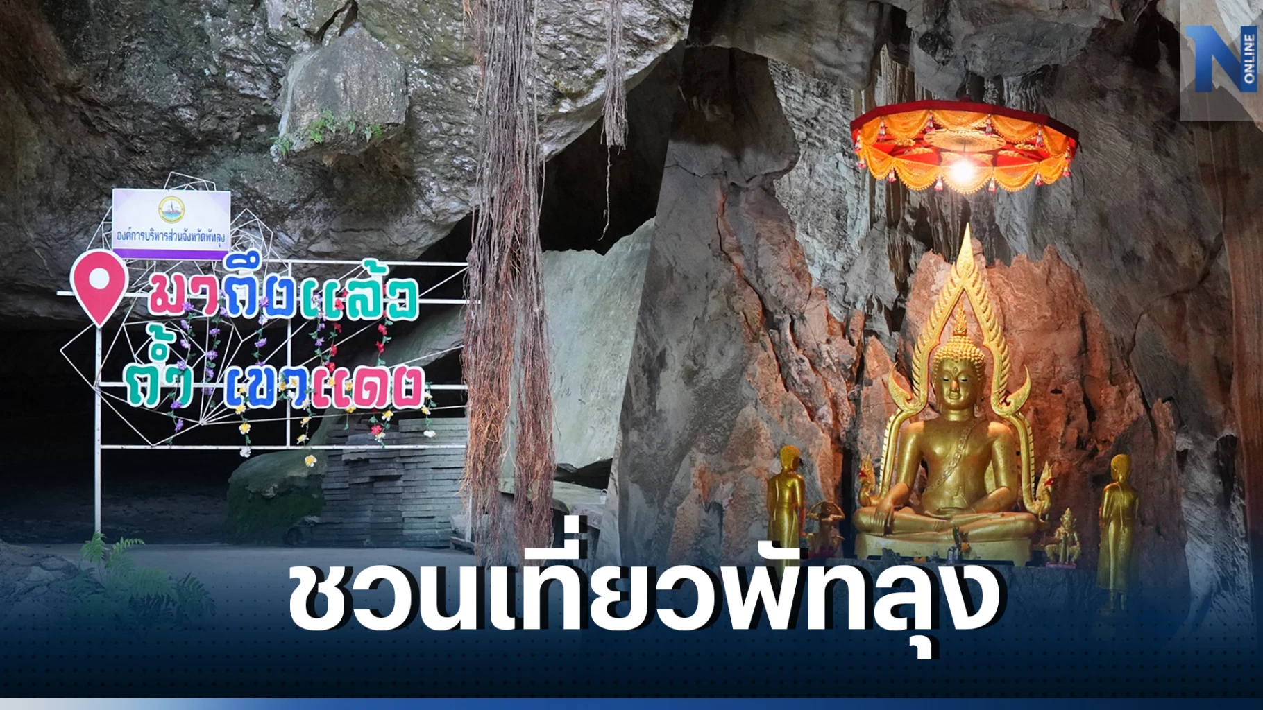 วันหยุดสุดสัปดาห์ 15-16 กรกฎาคม 2566 เนชั่นออนไลน์ชวนเที่ยว "ถ้ำน้ำลอดเขาแดง" พื้นที่หมู่ที่ 5 ตำบลพญาขัน อำเภอเมือง จังหวัดพัทลุง ซึ่งเป็นถ้ำหินปูนที่เกิดจากการกัดเซาะของน้ำใต้ดินและน้ำฝน จนทำให้เกิดเป็นโพรงถ้ำ มีดินตะกอนทับถมและน้ำขังพื้นล่าง นอกจากนี้พระครูถาวรชัยคุณ (หลวงพ่อหมุน ยสโร) อดีตเจ้าอาวาสวัดแดงตะวันออก ยังได้ทำพิธีปลุกเสกพระเครื่องวัตถุมงคลภายในถ้ำใต้ภูเขาแห่งนี้ และได้สร้างพระพุทธรูปปางนาคปรก ซึ่งเป็นพระประจำวันเกิดของท่านไว้หน้าถ้ำอีกด้วย