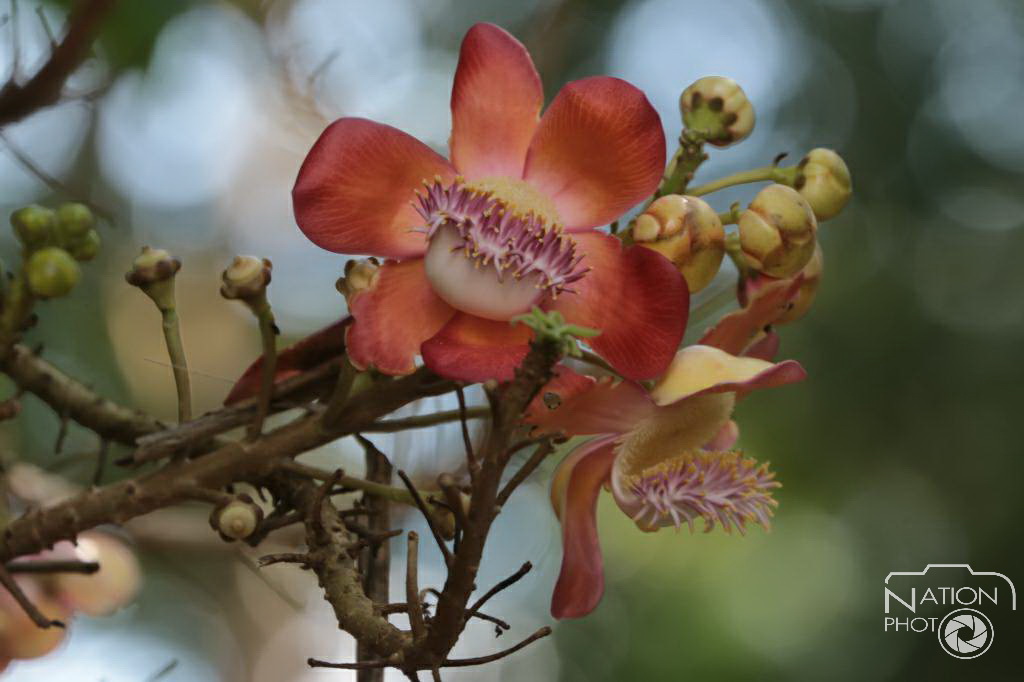 สาละลังกา(Couroupita guianensis Aubl.) ลักษณะของพืชต้นนี้ เป็นไม้ต้นขนาดกลางถึงขนาดใหญ่ ผลัดใบ เปลือกสีน้ำตาล ใบ เดี่ยว ออกเวียนสลับตามปลายกิ่ง รูปใบหอกกลับ ปลายแหลม โคนสอบ มน ขอบใบจักตื้นๆ ดอก ช่อใหญ่ ยาว ออกตาม