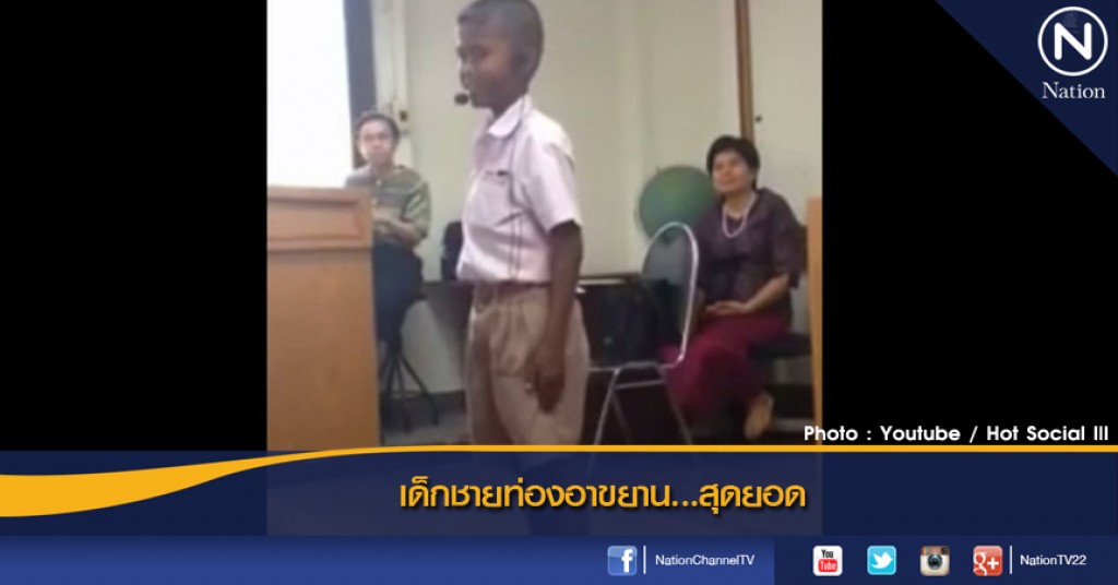 เด็กชายชนาธิป ประโคน นักเรียนป.5 ท่องอาขยาน"ไทยรวมกำลังตั้งมั่น" ได้เพราะสุดๆ