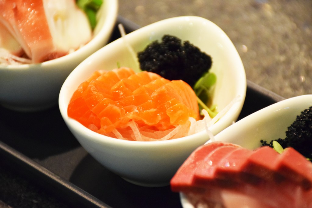 เริ่มที่ ปลาดิบ 4 อย่าง แร่บางในซอสรสเด็ด Site Tataki (300 บาท) มีเนื้อปลาทูน่า ปลาไท้ แซลม่อน และ หมึก ท็อปมาด้วยคาร์เวีย กับน้ำซอสรสอร่อย สำหรับจานนี้ แฟนปลาดิบไม่ควรพลาดครับ ผมแนะนำ
