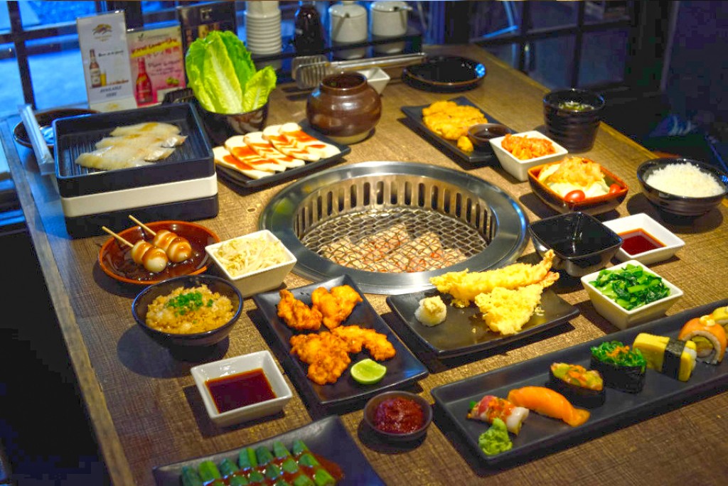 ในส่วนของบุฟเฟ่ 599 บาท มีให้คุณเลือกมากมาย สำหรับคนรักเนื้อไม่ควรพลาด เช่น เนื้อสัน เนื้อฮาราบิ เนื้อสันพิเศษ สำหรับคนที่ไม่ทานเนื้อยยิ่งต้องมาเพราะมีทั้ง เนื้อหมูชั้นดี ไก่ เป็ด รวมถึงซีฟู้ดที่ไม่ควรพลาด ทั้งแซลม่อน กุ้ง ปลาหมึก ปลาไข่ หอยแมลงภู่นิวซีแลนตัวโตๆ รวมถึงช้าวปั้นหน้าต่างๆอีกมากมาย รวมถึงเห็ด ฟักทอง ผักกาด