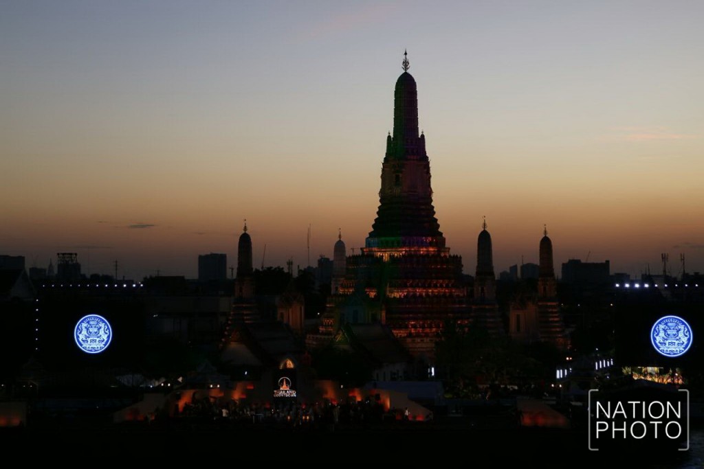 แสงสีสุดท้ายของวันส่งท้ายปีเก่า บริเวณวัดอรุณราชวราราม กรุงเทพมหานคร ก่อนการนับถอยหลังเข้าสู่ปีใหม่แบบไทย ภาพ กิตตินันท์ รอดสุพรรณ