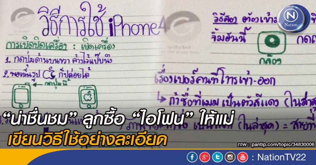 อย่างลูกสาวคนหนึ่ง ได้เขียนบล็อกบนเว็บไซด์ชื่อดัง เพื่อแบ่งปันเรื่องราวดีๆ ถึงเรื่องราวที่เธอสอนให้คุณแม่ของเธอเล่นสมาร์ท โดยเขียนคู่มือ วิธีการใช้ บนกระดาษด้วยภาษาที่เข้าใจง่าย ทำให้ผู้ใหญ่เข้าใจมากยิ่งขึ้น โดยเป็นความรู้พื้นฐานเบื้องต้น อาทิ วิธีการโทรออก รับสาย เช็คข้อความ ถ่ายรูป ซึ่งในอนาคตจะสอนวิธีการเล่นโซเชียลมีเดียอย่าง ไลน์ เพื่อคุยกับตนเองได้ ถือเป็นเรื่องราวที่โลกออนไลน์ประทับใจกับสิ่งที่ลูกสาวได้ทำสิ่งนี้ให้ผู้เป็นแม่