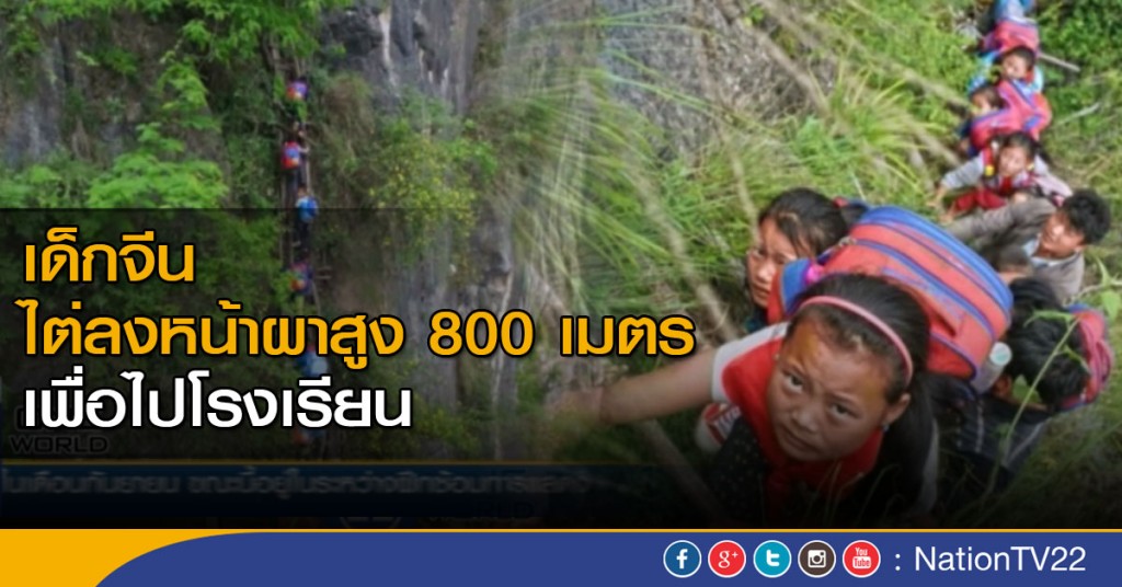 เด็กนักเรียน 15 คนที่อาศัยอยู่ในหมู่บ้านริมหน้าผาในมณฑลเสฉวนของจีนต้องไต่บันไดไม้ 17 อันลงจากหน้าผาสูง 800 เมตร เพื่อไปโรงเรียนที่อยู่เบื้องล่างทุกวัน