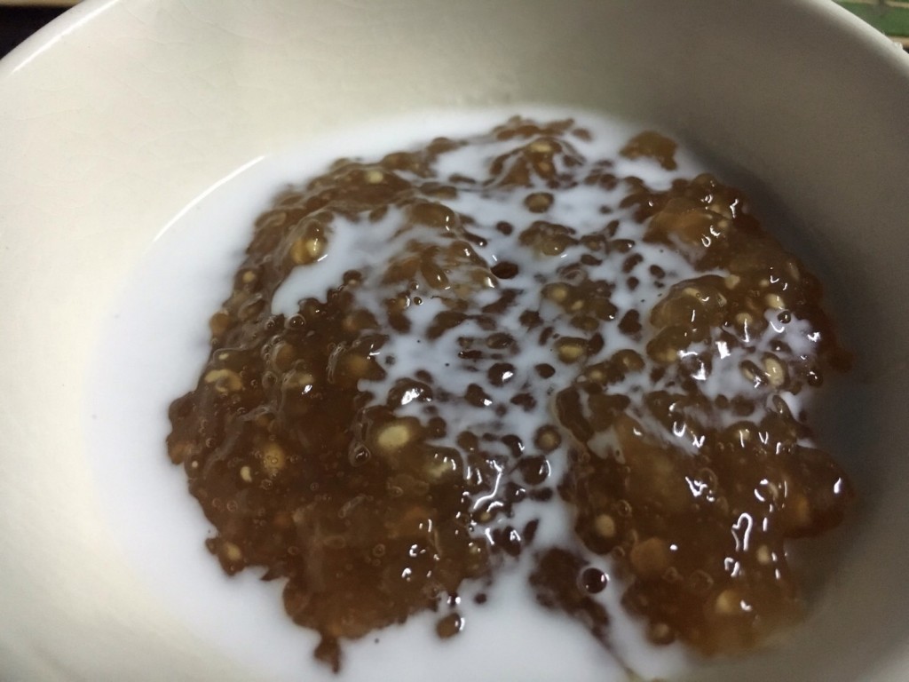 กวนไปเรื่อยๆไฟกลางค่อนอ่อน ระวังก้นไหม้ เพราะถ้าไหม้ กลิ่นจะไปทั้งหม้อ ใจเย็นๆ ค่อยๆกวนไปจนได้แป้งในลักาณะที่เรียกว่า ตากบ คือมีแป้งเล็กๆอยู่ด้านใน พอได้แล้วก็ใส่น้ำตาลทราย 1 ถ้วยตวงลงไปกวนด้วย แป้งสาคูจากต้นสาคูเมื่อกวนแล้วจะได้สีแดงสวยเลยทีเดียวและมีกลิ่นและรสเฉพาะตัว จะไม่เหมือน สาคูเม็ดที่ทำจากแป้งมันแน่ๆ