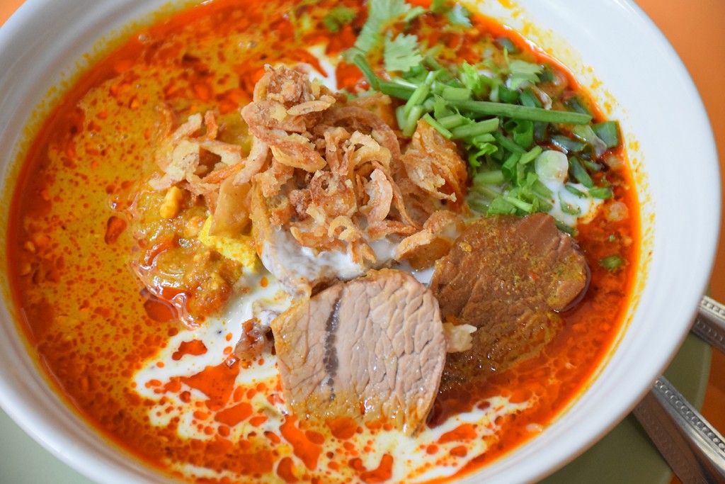 ไปถึงก็จัดเลย ก๋วยเตี๋ยวแกงเนื้อ โอโห ไม่ผิดหวังจริงๆ น้ำแกงเข้มข้น ถึงรสถึงชาติถึงเครื่องแกงในแบบมุสลิม กะทิข้น มากับเนื้อตุ๋นชิ้นใหญ่ โรยด้วยถั่วลิสงคั่วบดและหอมเจียวกรอบๆ จานนี้ผมให้เต็มสิบ หายคิดถึงก๋วยเตี๋ยวแกงได้เลย เมนูนี้ผมแนะนำ