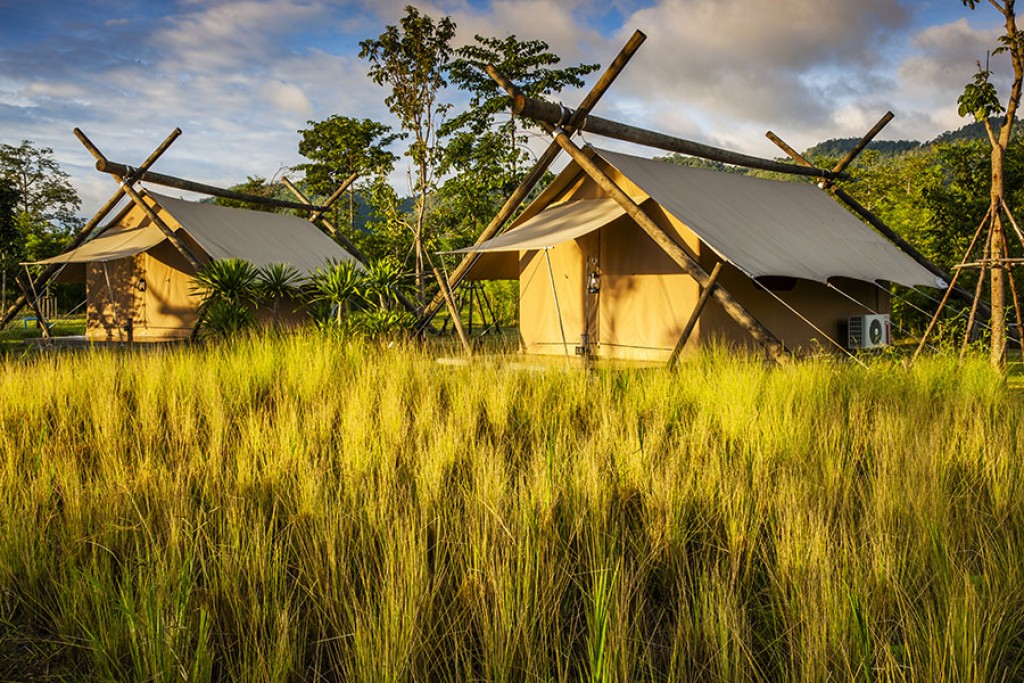 รีสอร์ทริมแม่น้ำแควสุดฮิปที่จำลองบรรยากาศการตั้งแคมป์ในป่าออกมาได้อย่างมีเสน่ห์โดยห้องพักเต็นท์แต่ละหลังจะตั้งอยู่ในลานหญ้า สามารถออกมาย่างบาร์บีคิวสังสรรค์ทำความรู้กันเพื่อนใหม่ได้ด้วยเต็นท์แต่ละหลังตกแต่งในสไตล์แอฟริกันซาฟารีที่ดูเท่และเข้ากับธรรมชาติโดยรอบได้ดีแต่ละห้องยังมีระเบียงชมวิวและห้องน้ำส่วนตัวใครที่กลัวลมเย็นตอนอาบน้ำก็ไม่ต้องกังวลเพราะมีเครื่องทำน้ำอุ่นให้ทุกห้อง