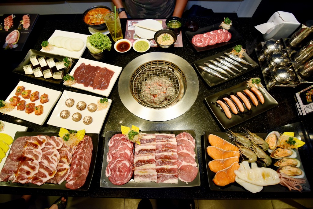 ที่นี่มีบริการทั้งแบบบุฟเฟต์ แบ่งออกเป็น 2 ราคา เริ่มที่ พรีเมี่ยมบุฟเฟ่ต์ 399++ (ไม่รวมน้ำดื่ม) ที่มีทั้งเนื้อริบอาย เนื้อคารูบิ สันคอหมู เบคอนรมควัน ซี่โครงหมูซอสบาร์บีคิว ตับหมูและอีกมากมาย