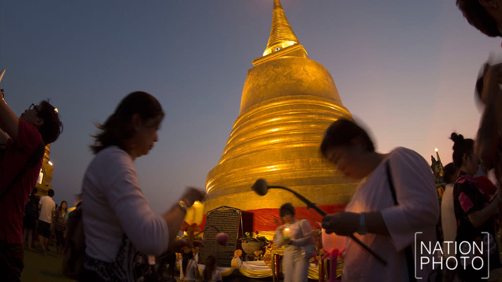 พุทธศาสนิกชน ร่วมเวียนเทียน ที่วัดสระเกศ