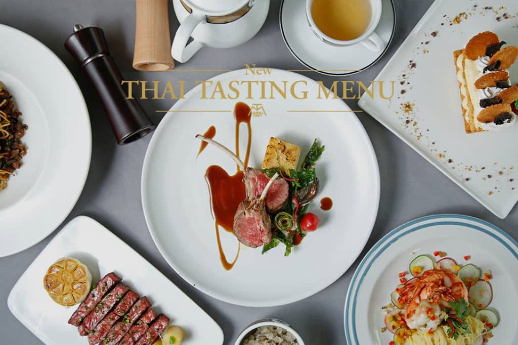 และอาหารที่ผสมผสาน"SpaghettiSmoked Duck with Spicy Basil" และ "Grilled Wagyu Steak with ThaiSpicy Sauce