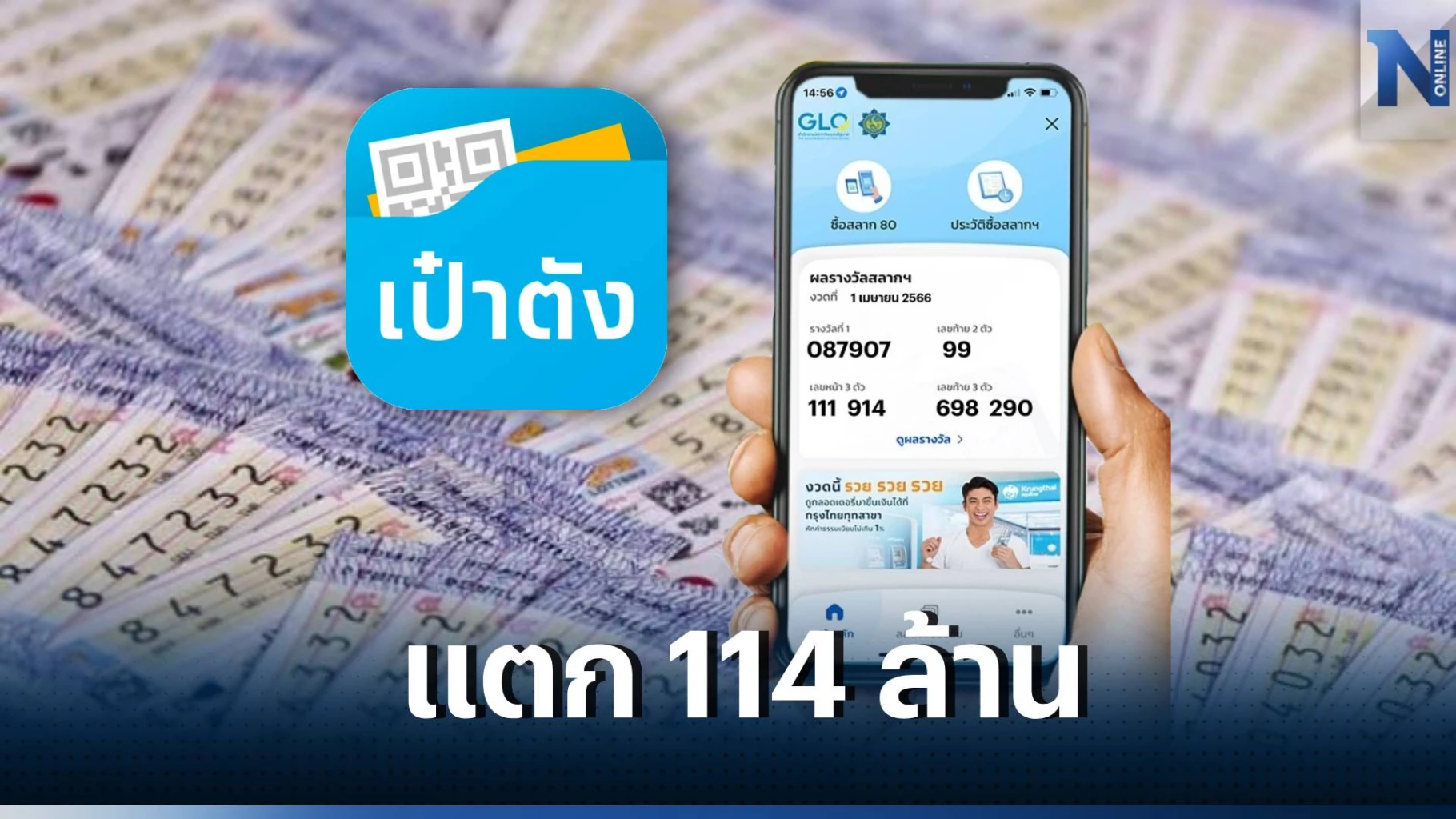 สำนักงานสลากกินแบ่งรัฐบาล รายงานผล การถูกสลากกินแบ่งรัฐบาลดิจิทัล บน แอปพลิเคชันเป๋าตัง ในงวดประจำวันที่ 1 เมษายน 2566 พบว่ารางวัลที่ 1 เลขที่ 087907 มีจำนวนใบที่ถูกทั้งหมด 19 ใบ รวมเป็นเงินรางวัล 114 ล้านบาท ดังนี้