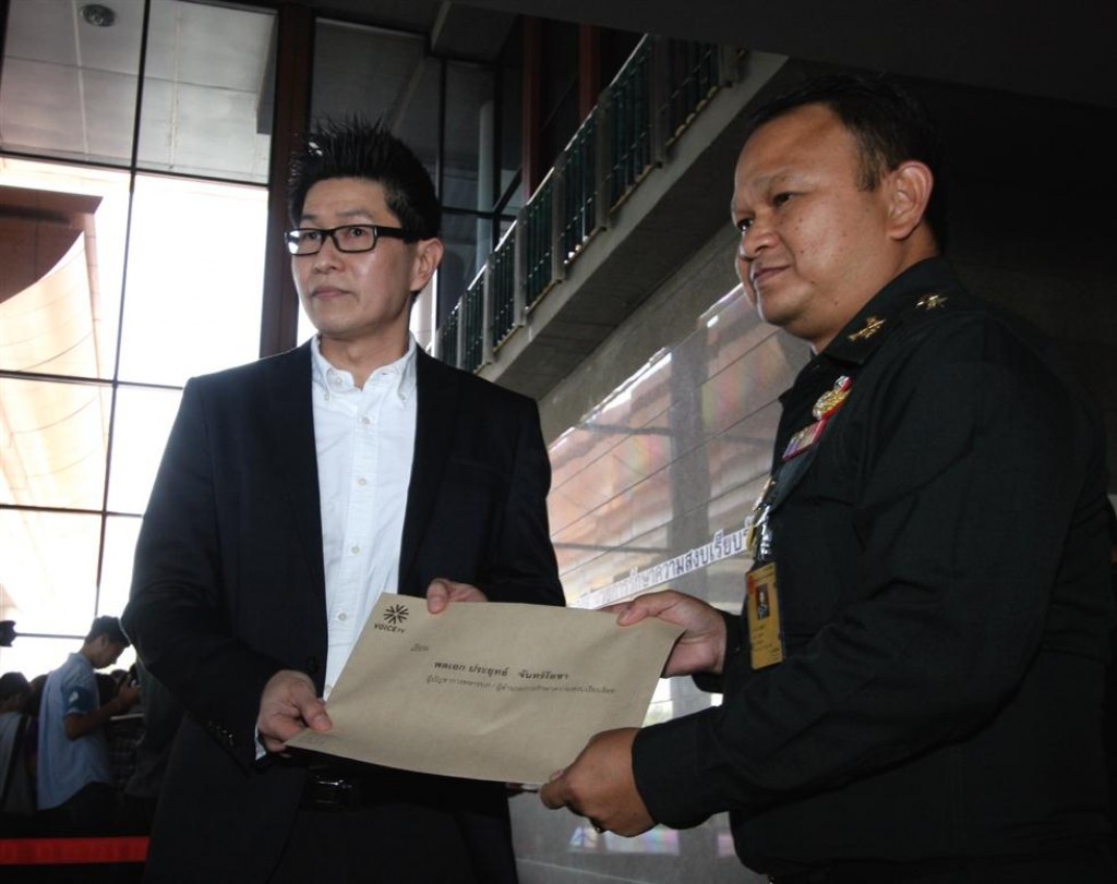 ผู้บริหารวอยซ์ทีวี เข้ายื่นหนังสือต่อพลเอกประยุทธ์ จันทร์โอชา ผบ.กอ.รส. เพื่อเรียกร้องขอความเป็นธรรมกรณีถูกให้ระงับการออกอากาศตามคำสั่งกอ.รส. โดยมีตัวแทนรับหนังสือ ที่กอ.รส. สโมสรกองทัพบก