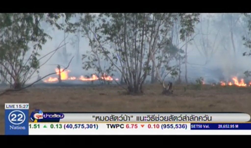 สัตวแพทย์ประจำกรมอุทยานแห่งชาติสัตว์ป่าและพันธุ์พืช นายสัตวแพทย์ภัทรพล มณีอ่อน บอกว่า หลังจากเกิดไฟป่าขึ้นบริเวณใกล้ กับศูนย์ช่วยเหลือสัตว์ป่าภาคกลาง จังหวัดนครนายก แม้จะควบคุมสถานการณ์ได้แล้ว แต่พื้นที่เสี่ยงที่อื่นๆ ขณะนี้คลินิกสัตว์ป่า ต้องมีการเตรียมพร้อมรับมือช่วยเหลือสัตว์ป่าที่อาจจะสำลักควันไฟ หรือถูกแผลไฟลวกพุพอง ในกรณีที่ไม่สามารถเคลื่อนย้ายสัตว์ป่าออกมาได้ทัน จนอาจมีไฟลุกไหม้ใกล้กับกรงของสัตว์ป่า เบื้องต้นให้ระดมนำกระสอบ หรือผ้าขนหนู ชุบน้ำไปปิดไว้ตามผนังของคอก เพื่อป้องกันสัตว์แสบตา และเกิดภาวะเครียด หรือถ้าสัตว์มีการสำลักควัน ต้องมีอุปกรณ์ออกซิเจน โดยสามารถโทรแจ้งที่หมายเลข 1362