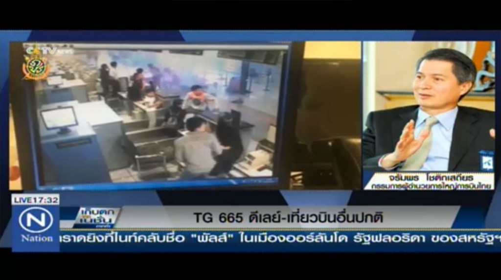 สัมภาษณ์สด คุณจรัมพร โชติกเสถียร กรรมการผุ้อำนวยการใหญ่ การบินไทย ถึงเหตุระเบิดที่บริเวณเคาน์เตอร์เช็คอิน ซี ภายในอาคารผู้โดยสารที 2 ของสนามบินผู่ตงในนครเซี่ยงไฮ้