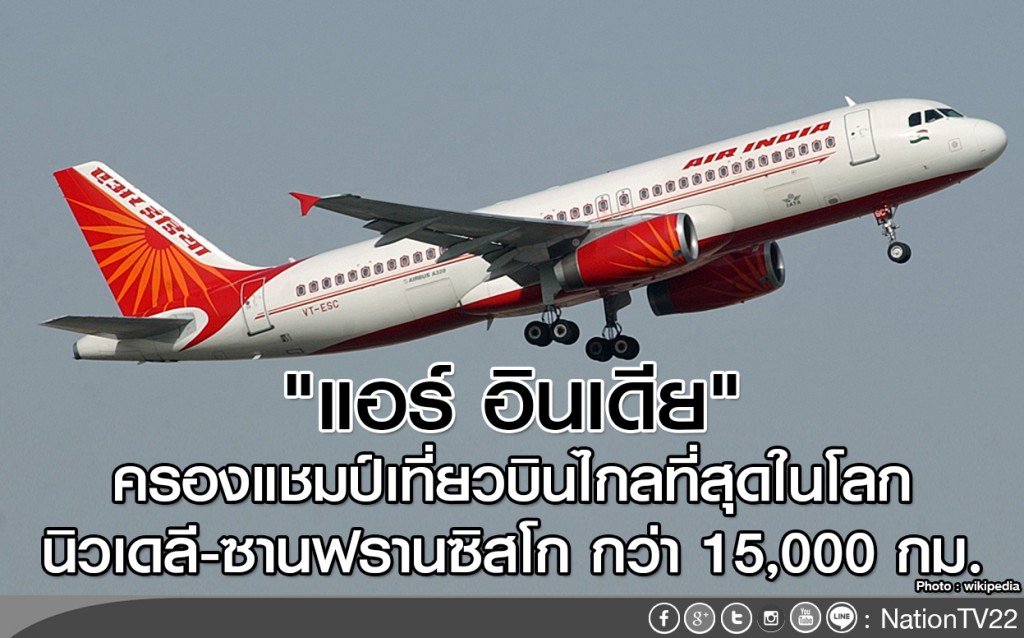 สายการบินแอร์ อินเดีย เที่ยวบินนิวเดลี-ซานฟรานซิสโก ที่เดิมได้ชื่อว่าเป็นที่เที่ยวบินที่ยาวนานที่สุดเป็นอันดับที่ 2 ของโลก รองจากสายการบินเอมิเรตส์ เที่ยวบินโอ๊คแลนด์-ดูไบ ที่มีระยะทาง 14,120 ก.ม.ได้คว้าแชมป์มาครอง หลังเปลี่ยนไปบินข้ามมหาสมุทรแปซิฟิกแทนมหาสมุทรแอตแลนติก ทำให้เพิ่มระยะทางเป็น 15,210 ก.ม. แต่ก็เหลือเชื่อว่า แม้ระยะทางจะไกลกว่าเดิม แต่กลับใช้เวลาน้อยกว่าเดิมเกือบ 2 ชั่วโมง คือ 14 ชั่วโมง 30 นาที ส่วนปัจจัยที่ช่วยให้บินเร็วขึ้นคือ ลมส่งท้ายที่เกิดขึ้นในขณะที่เครื่องบินเคลื่อนที่ไปในทิศทางเดียวกับลมนั่นเอง