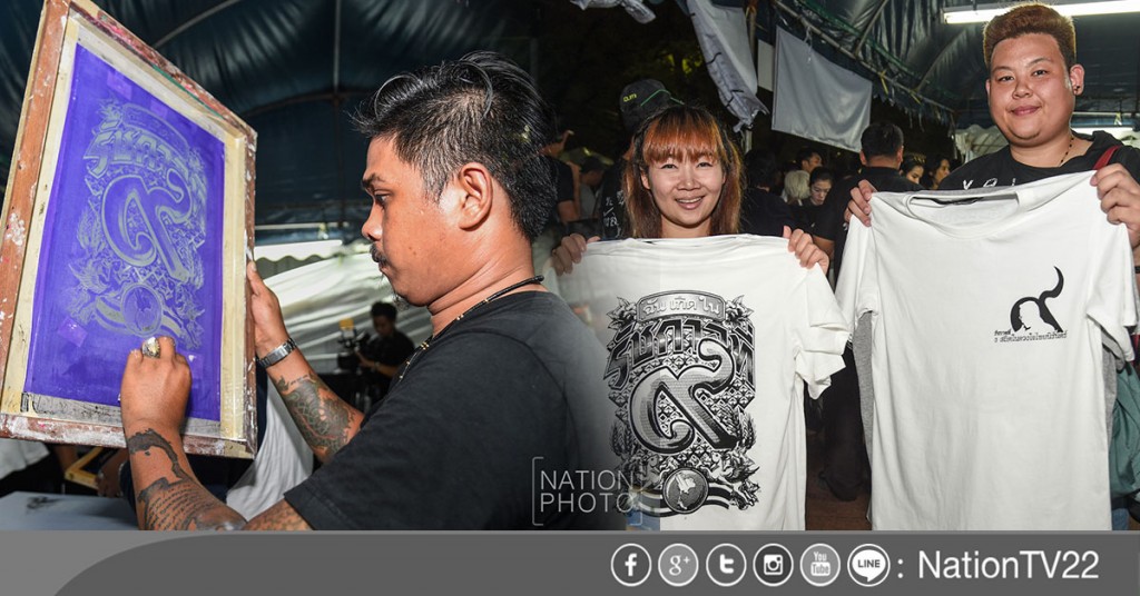 กลุ่มอาชีวะช่วยชาติ ณ ราชดำเนิน 56 สกรีนเสื้อให้กับประชาชนที่สนใจฟรี เพื่อแสดงความอาลัยพระบาทสมเด็จพระปรมินทรมหาภูมิพลอดุลยเดช เนื่องจากหลายคนไม่ค่อยมีเสื้อโทนสีเข้มหรือไม่มีเสื้อสีดำ โดยได้ทำบล๊อคทั้งหมด 20 บล๊อค มีทั้งหน้าและหลัง สามารถนำเสื้อสีขาว ดำ (ต้องเป็นเสื้อไม่มีลวดลาย) มาสกรีนได้ตั้งแต่เวลา 17.00 - 20.00 น. ที่บูธโซนเหนือ 26 เมื่อวันที่ 27 ตุลาคม 2559 ที่สนามหลวง กรุงเทพมหานคร