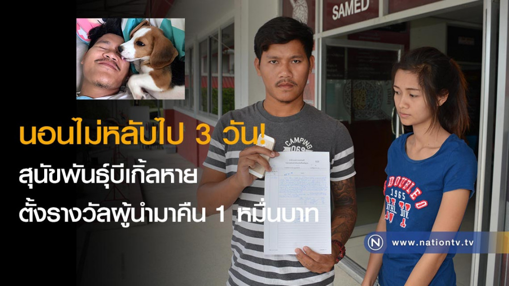 ชลบุรี-เมื่อเวลา 11.00 น.วันที่ 2 พฤศจิกายน นายดิเรก ทองประเสริฐ อายุ 28 ปี พร้อมด้วยแฟนสาว น.ส.พนิดา บุญพา อายุ 19 ปี ได้เดินทางเข้าพบพนักงานสอบสวน สภ.เสม็ด พร้อมทั้งแจ้งความว่า อาศัยอยู่ที่ ยูพี อพาร์ทเม้นท์ หมู่ 1 ต.เสม็ด อ.เมือง จ.ชลบุรี และได้ซื้อลูกสุนัขพันธุ์บีเกิ้ลจากตลาดนัดจตุจักร ต.ห้วยกะปิ อ.เมืองชลบุรี มาเลี้ยงได้ประมาณ 3 เดือน ตั้งชื่อว่าไข่ตุ๋น เพศเมีย อายุประมาณ 5 เดือน ได้หายไปจากที่พักมาแล้ว 3 วัน คอยว่าจะกลับบ้าน แต่ไม่ยอมกลับ จึงได้มาแจ้งความที่ สภ.เสม็ด หากใครพบเห็นและนำมาคืนจะมีรางวัลให้ เพราะรักเหมือนลูกอยากได้กลับคืนนายดิเรกกล่าวว่า ไข่ตุ๋นซื้อมาจากตลาดนัดจตุจักรและนำมาเลี้ยงที่หอพัก ปกติจะนอนอยู่ด้วยกัน และไปไหนก็จะไปด้วยกัน ภายในรถเก๋งได้มีการจัดที่นอนไว้ให้ด้วย ที่สำคัญก่อนจะออกไปทำงานช่วงเช้าจะมาปลุกทุกวัน เมื่อหายไปก็คิดถึงอยากได้คืน ส่วนช่วงที่หายไปนั้น ไข่ตุ๋นจะออกไปเล่นกับสุนัขของคนสวนที่หอพักยูพี ซึ่งมี 2 ตัวทุกวัน และกลับขึ้นที่พักเอง วันนั้นคนสวนไม่อยู่ออกไปธุระข้างนอกนานประมาณ 10 นาที ไข่ตุ๋นได้หายไปแล้ว