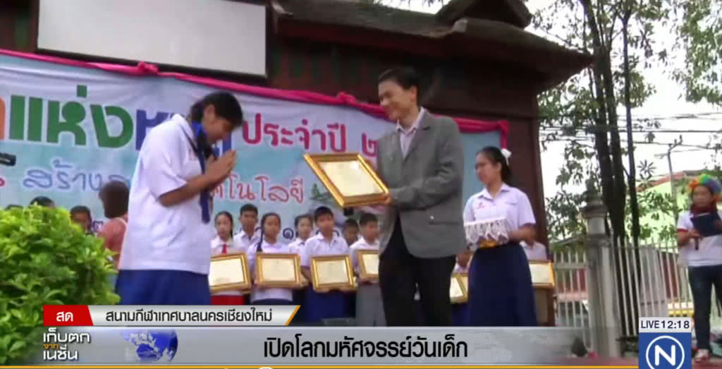 เราจะพาไปพบอีกสถานที่จัดงานวันเด็กที่น่าสนใจกลางเมืองเชียงใหม่ ซึ่งปกติก็เป็นสนามกีฬาแหล่งพักผ่อนหย่อนใจของชาวเชียงใหม่ ซึ่งได้เนรมิตพื้นที่ให้กลายเป็นจุดจัดงานวันเด็กที่มีขนาดกว้างอีกแห่ง ไปติดตามเรื่องนี้กับ คุณปฏิญญา ศรีสุภมาตุ ผู้สื่อข่าวเนชั่นทีวี ภาคเหนือ