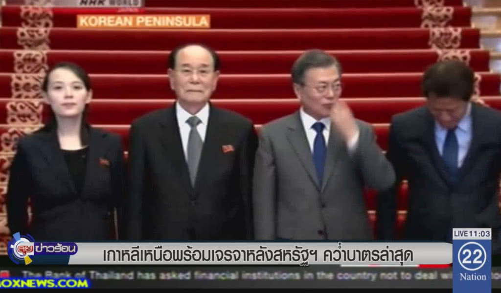 ประธานาธิบดีโดนัลด์ ทรัมป์ประกาศคว่ำบาตรเกาหลีเหนือครั้งรุนแรงที่สุดเมื่อสัปดาห์ที่ผ่านมาก่อนพิธีปิดโอลิมปิคเมื่อวันอาทิตย์ ล่าสุดเกาหลีเหนือออกมาประกาศโดยที่ปรึกษาสูงสุดของรัฐบาล และน้องสาวของคิมจองอึน คิมโยจอง ระบุว่า การคว่ำบาตรครั้งนี้รังแต่จะทำให้เมฆหมอกแห่งสงครามก่อตัวหนาแน่นปกคลุมคาบสมุทรเกาหลีแต่ไม่ว่าอย่างไรก็ตามเกาหลีเหนือก็พร้อมจะเปิดโต๊ะเจรจากับสหรัฐ