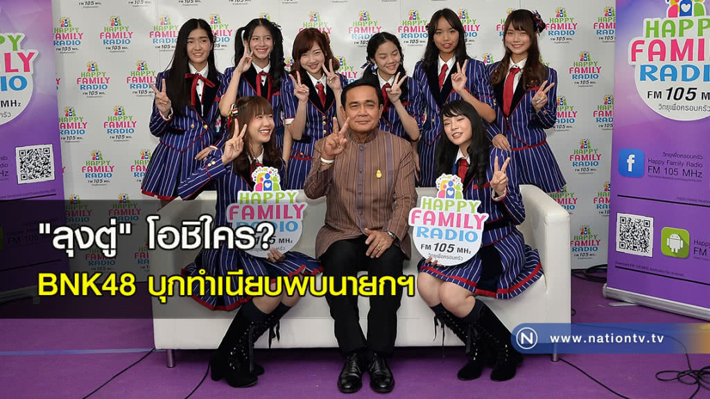 โดยกลุ่มสาวBNK48 เดินทางถึงทำเนียบรัฐบาลเพื่อประชาสัมพันธ์สถานีวิทยุเพื่อครอบครัวที่ชื่อว่า Happy Family Radio F.M.105 MHz.: วิทยุเพื่อครอบครัว ของกรมประชาสัมพันธ์ ซึ่งเป็นวิทยุครอบครัวตามแนวทางที่นายกฯ มอบหมายให้กรมประชาสัมพันธ์มีสถานีวิทยุสำหรับครอบครัว ให้เหมาะกับทุกช่วงวัย โดยเน้นตอบสนองกลุ่มเป้าหมายคนรุ่นใหม่ ซึ่งกรมประชาสัมพันธ์จึงได้เชิญกลุ่มศิลปินดังกล่าวมาโปรโมตรายการวิทยุเพื่อครอบครัว เพราะเป็นกลุ่มศิลปินตัวแทนของคนรุ่นใหม่
