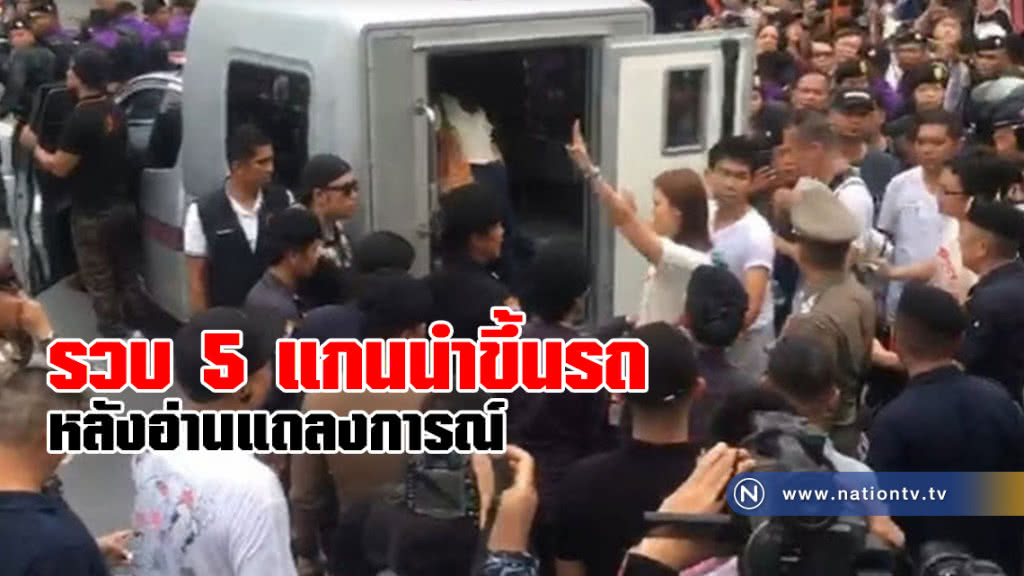 (คลิปข่าว) นาทีรวบ 5 แกนนำขึ้นรถ หลังอ่านแถลงการณ์