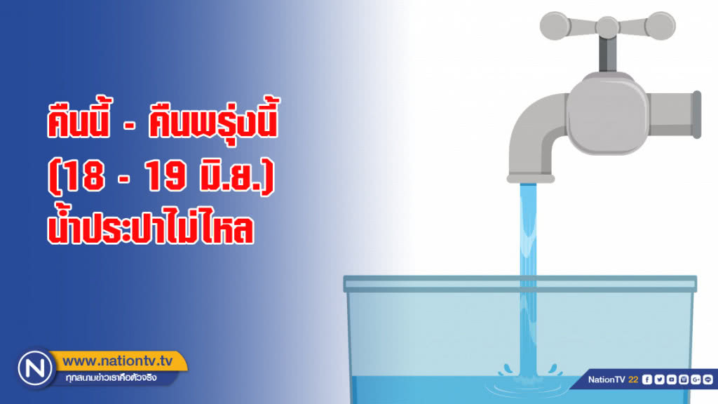 และในคืนวันพรุ่งนี้ (19 มิ.ย.) ตั้งแต่เวลา 22.00 - 05.00 น. ของวันรุ่งขึ้น กปน. มีความจำเป็นต้องยกเลิกท่อประธานเดิมขนาดเส้นผ่านศูนย์กลาง 900 มิลลิเมตร บริเวณหน้าคอนโดมิเนียม CENTRIC รัชดา - ห้วยขวาง ข้างอุโมงค์ทางลอดแยกห้วยขวาง ฝั่งขาเข้า ถนนรัชดาภิเษก โดยระหว่างดำเนินการจำเป็นต้องปิดการจราจรข้างอุโมงค์ทางลอด ฝั่งขาเข้า 2 ช่องทาง ตั้งแต่ข้างทางลงอุโมงค์ ถึงแยกห้วยขวาง ขอให้ประชาชนโปรดหลีกเลี่ยงเส้นทางในวันและเวลาดังกล่าว และส่งผลให้ น้ำประปาไม่ไหล ในพื้นที่ดังต่อไปนี้