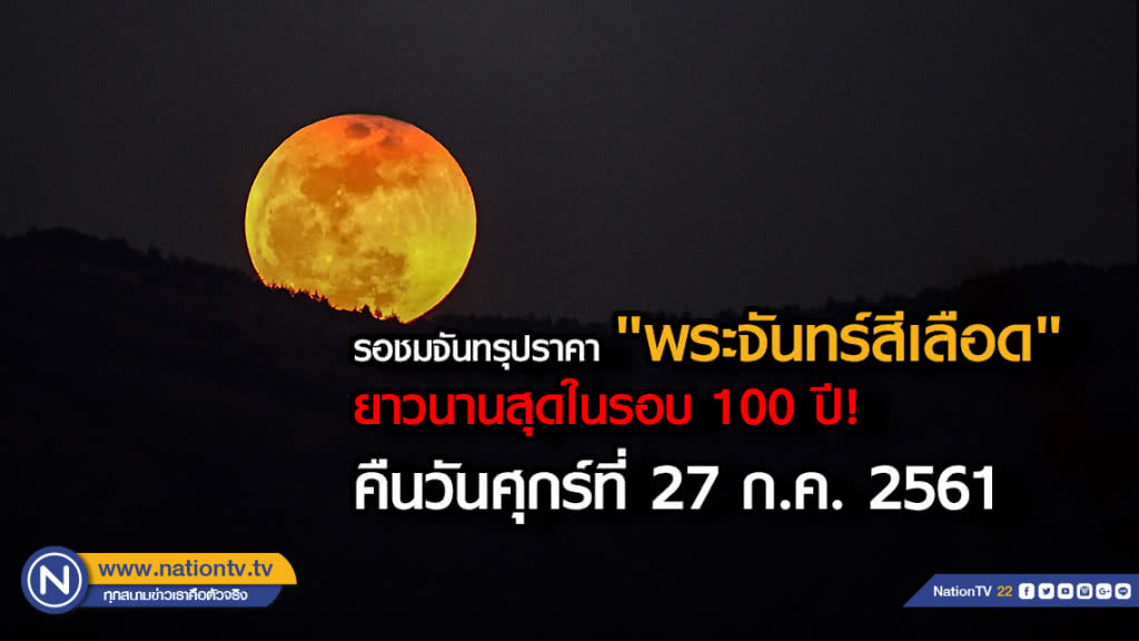 มาครั้งนี้ ในคืนของวันที่ 27 กรกฎาคม 2561 (ต่อเนื่องเช้าของวันที่ 28 กรกฎาคม 2561) เวลาประมาณ 02.30 น. จะเห็น จันทรุปราคาเต็มดวง แต่ครั้งนี้ดวงจันทร์จะกลายเป็นสีแดง เรียกว่า พระจันทร์สีเลือด (Blood Moon)