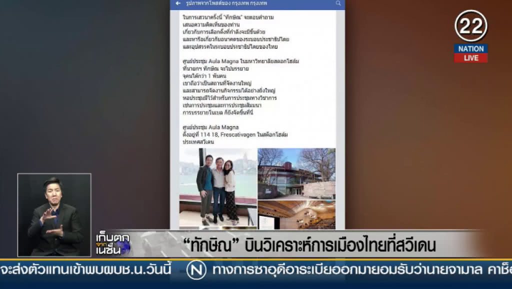เพจของกลุ่มคนเสื้อแดงเฟชบุ๊ก กรุงเทพ กรุงเทพ ได้มีการรายงานความเคลื่อนไหวของ อดีตนายกรัฐมนตรี ทักษิณ ชินวัตร อย่างต่อเนื่อง โดยล่าสุดอดีตทักษิณ ชินวัตร อดีตนายกรัฐมนตรี จะเดินทางไปบรรยายเรื่องการเมืองไทย ที่มหาวิทยาลัยในสต็อกโฮล์ม ประเทศสวีเดน ในวันที่ 6 พฤศจิกายน พ.ศ.2561 เวลา 16.00 - 17.30 น.ซึ่งมี ดร.อีวา ฮันสัน ผู้เชี่ยวชาญด้านเอเชียศึกษามหาวิทยาลัยสตอกโฮล์ม เป็นผู้ประสานงาน เพจดังกล่าวยังระบุด้วยว่า ดร. อีวา ศึกษาและสนใจ การเป็นประชาธิปไตยในเอเชียตะวันออกเฉียงใต้และเงื่อนไขของระบอบประชาธิปไตยในประเทศไทยและเวียดนาม