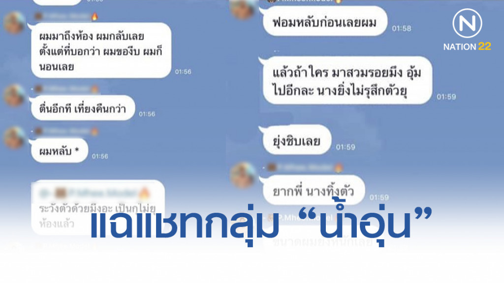 ซึ่งในแชทกลุ่มดังกล่าว เมื่อถูกถามว่า แล้วถ้าใครมาสวมรอยมึง อุ้มไปอีกล่ะ นางยิ่งไม่รู้สึกตัวด้วย 'น้ำอุ่น' ก็ตอบกลับไปว่า ยากพี่ นางทิ้งตัว ขนาดผมยังหนักเลย จนกระทั่งถูกถามอีกทีว่า ตอนอุ้มมาก็ไม่มีสติเลยหรอ เจ้าตัวก็ตอบว่า มีสติ แต่น้อยมาก ท่ามกลางชาวเน็ตเข้ามาแสดงความคิดเห็นเป็นจำนวนมาก