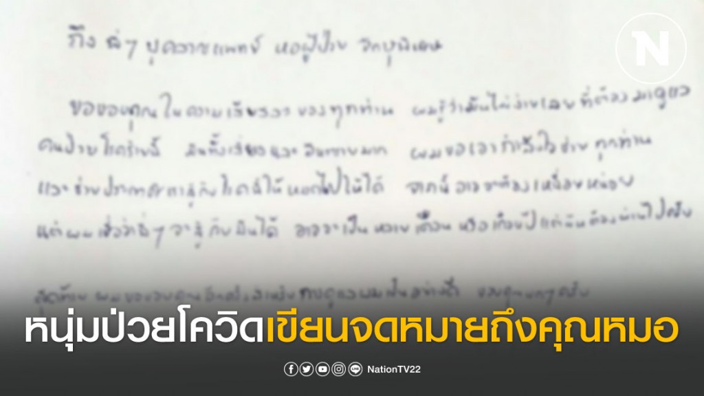 ถึงพี่ๆ บุคลากรเเพทย์ หอผู้ป่วย ......ขอขอบคุณในความเสียสละของทุกท่าน ผมรู้ว่ามันไม่ง่ายเลยที่ต้องดูเเลคนป่วยโรคร้ายนี้ มันทั้งเสี่ยงเเละอันตรายมาก ผมขอเป็นกำลังใจช่วยทุกคน เเละช่วยประเทศเราสู้กับโรคนี้ไปให้หมดไปให้ได้ จากนี้อาจจะต้องเหนื่อนเเต่ผมเชื่อว่าพี่ๆ จะสู้กับไปได้ อาจจเป็นหลายเดือนหรือหลายปีเเต่มันต้องผ่านไปครับ สุดท้ายผมขอขอบคุณอีกครั้งสำหรับการดูเเลผมเป็นอย่างดี ขอบคุณมากๆครับ