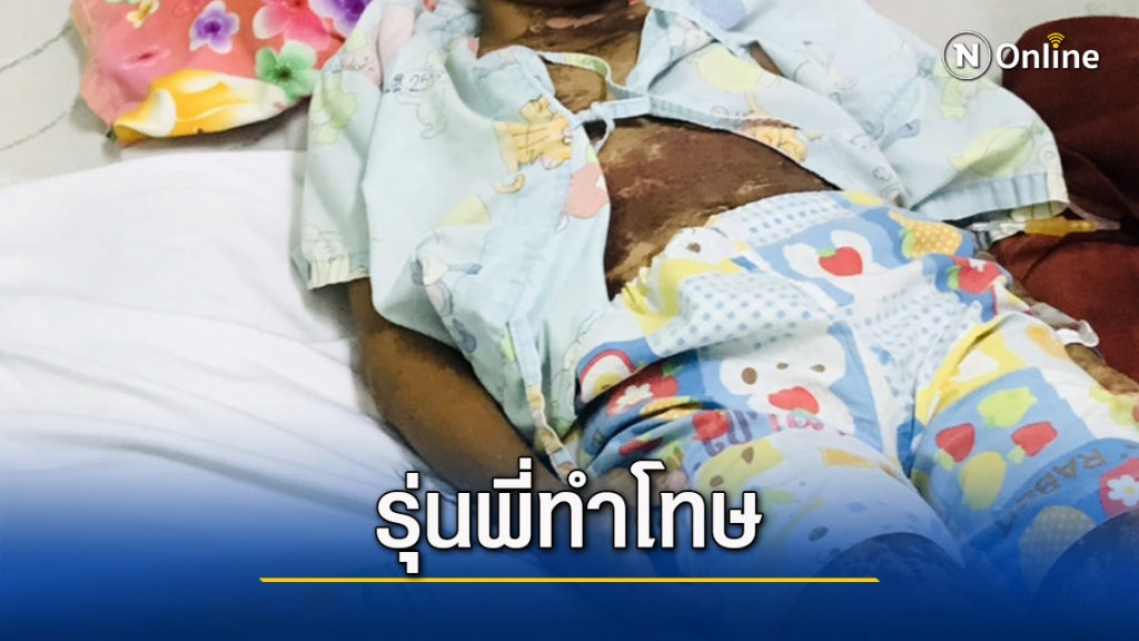 นอกจากนั้นยังเอาศีรษะกระแทกที่ตู้เก็บของจนมีอาการปวดที่ศีรษะ ต่อมาวันรุ่งขึ้นก็ไปแจ้งครูประจำชั้น แต่ครูบอกว่าไม่ต้องไปหาหมอ ให้ไปห้องพยาบาลและรับยามาทาบรรเทาความเจ็บปวด แต่ลูกตนมีอาการหนักขึ้น เพราะแผลเริ่มพุพองขึ้นเรื่อยๆ จนกระทั่งพี่ชายและพี่สาวของน้องที่เรียนอยู่ไปเห็นเข้า จึงโทรศัพท์มาบอกตนว่าน้องถูกรุ่นพี่ทำร้าย ตนกับสามีจึงรีบเดินทางไปที่โรงเรียน แต่ก็ไม่พบครู จึงขออนุญาต รปภ.นำลูกออกมา ส่งรักษาตัว ที่ รพ.เขาพนม ดังกล่าว ซึ่งขณะนี้ลูกทรมานอย่างมาก