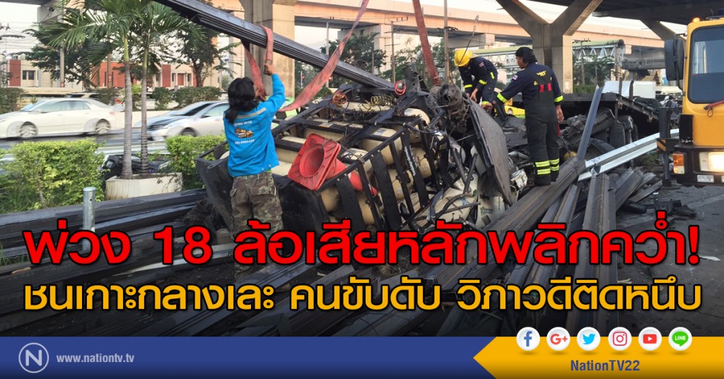 ที่เกิดเหตุอยู่บริเวณช่วงถนนวิภาวดีช่องทางด่วน ฝั่งขาเข้า ตรงข้ามคลังสินค้าดอนเมืองประตู 8 ก่อนถึงทางเบี่ยงเข้าเลนคู่ขนานประมาณ 200 เมตร พบรถบรรทุกพ่วง 18 ล้อ ยี่ห้อฮีโน่ สีขาว ส่วนหัวรถหมายเลขทะเบียน 70-4085 นนทบุรี และส่วนพ่วงหมายเลขทะเบียน 70-5146 นนทบุรี ทั้งสองส่วนตกคูน้ำเกาะกลางระหว่างช่องทางด่วนกับช่องทางขนาน สภาพรถพังยับเยิน ด้านหลังบรรทุกเหล็กฉากขนาด 3 นิ้ว หล่นกระจายไปทั่วบริเวณ นอกจากนี้ยังพบแก็สเชื้อเพลิงรั่วไหล เจ้าหน้าที่จึงประสานขอรถดับเพลิงสำนักป้องกันและบรรเทาสาธารณะภัยเขตจตุจักรเข้าทำการปิดวาลว์แก็ส และฉีดน้ำไว้ตลอดเวลาเพื่อป้องกันการเกิดเพลิงใหม้