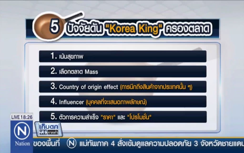 ซึ่ง 5 สาเหตุหลักนี้ น่าจะเป็นปัจจัยที่ทำให้กระทะโคเรียคิงส์มียอดขายสูงมาก ซึ่งไม่ได้มีการชี้แจงจากบริษัทว่าสามารถขายกระทะทั้งหมดได้เท่าไหร่ แต่ตัวเลขที่ชี้วัดได้ถึงความสำเร็จที่ใช้ในการโฆษณาผ่านสื่อทีวี หนึ่งในช่องทางหลักที่โคเรียคิงส์ใช้ โดยเฉพาะปี 59 มูลค่าโฆษณาทั้งปีของกระทะโคเรียคิงส์มากถึง 1,644 ล้านบาท หรือแซงหน้างบโฆษณาทั้งปีของบริษัทชั้นนำในอุตสาหกรรมยานยนต์เป็นเท่าตัว