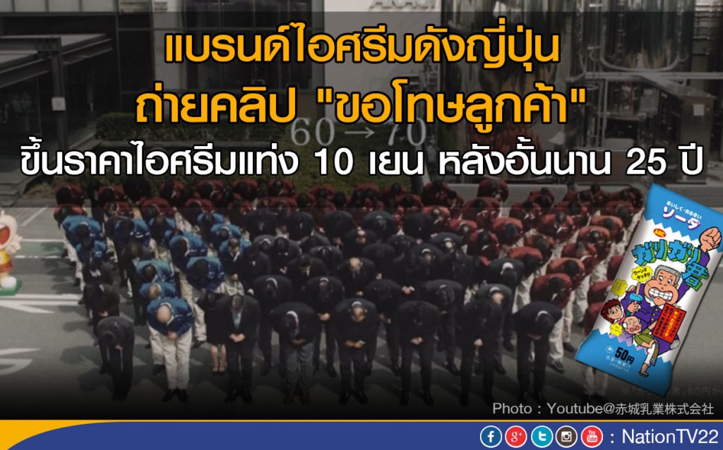 ในคลิปวิดีโอที่อัพโหลดลงเว็บไซต์ยูทูบซึ่งสถานีโทรทัศน์ของญี่ปุ่นเองได้นำไปเผยแพร่ต่อนั้น ปรากฎภาพนายฮิเดกิ ไอโนอิ ประธานบริษัท พร้อมด้วยพนักงานของบริษัทไอศรีม Akagi Nyugyo ได้โค้งคำนับแสดงถึงการขออภัยสำหรับการปรับขึ้นราคาไอศรีมแท่ง "การิการิคุง" ในราคา 10 เยน จาก 60 เยน เป็น 70 เยน หลังจากไม่ยอมเปลี่ยนแปลงราคามานานกว่า 25 ปี