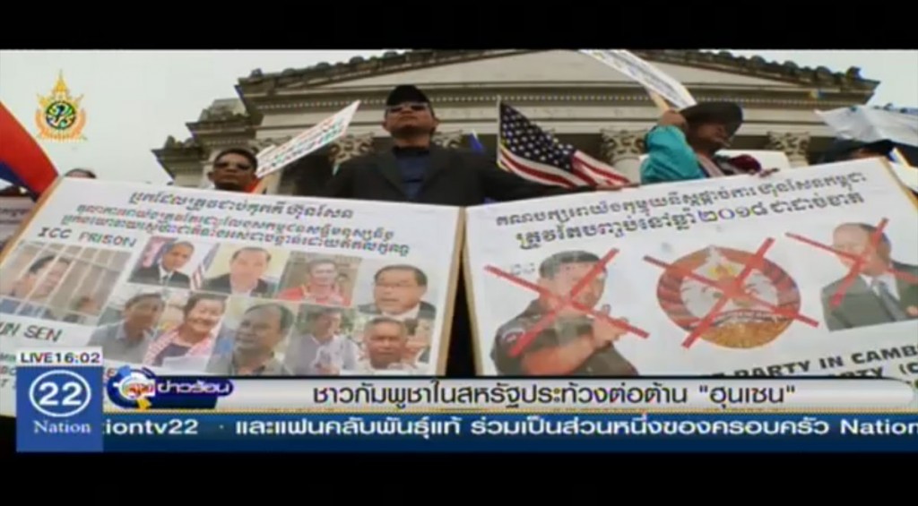 บรรดาผู้ชุมนุม ต่างถือป้ายประท้วง เรียกร้องให้ปลอดนักโทษการเมืองฝ่ายตรงข้ามกับนายกรัฐมนตรีฮุน เซน และต้องให้การเลือกตั้งที่จะเกิดขึ้นในปี 2561เป็นอิระ