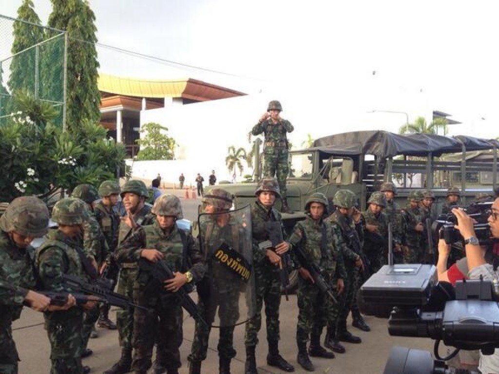 ก่อนควบคุมตัวได้ มีรถฮัมวี่ จำนวน 3-4 คัน มาปิดบริเวณทางออกภายในสโมสร ทบ. และมีกำลังทหารหน่วยต่างๆ ที่เตรียมเอาไว้จำนวนหนึ่งมาปิดล้อม ไม่ให้ผู้สื่อข่าวที่ทำข่าวภายใน สนามหญ้าข้างสโมสร มีความวุ่นวาย สื่อทั้งไทย และเทศต่างแตกฮือ เข้ามาทำข่าว