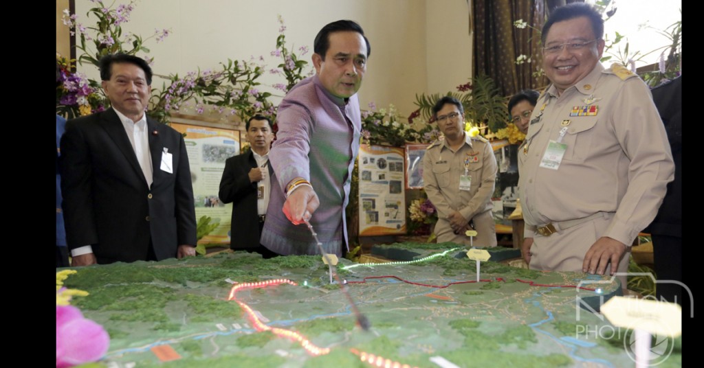 และจากนั้นพลเอกประยุทธ์พร้อมกับพลเอกประวิตร วงศ์สุวรรณ รองนายกรัฐมนตรีและรมว.กลาโหม พลเอกฉัตรชัย สาริกัลยะ รมว.พาณิชย์ ในฐานประธานคณะกรรมการกำหนดนโยบายและบริหารจัดการน้ำคสช. เดินมาถึงบูธของกรมชลประทานที่นำโมเดลการบริหารการจัดการน้ำมาจัดแสดง ซึ่งมีนายเลิศวิโรจน์ โกวัฒนะ อธิบดีกรมชลประทาน เป็นผู้บรรยาย