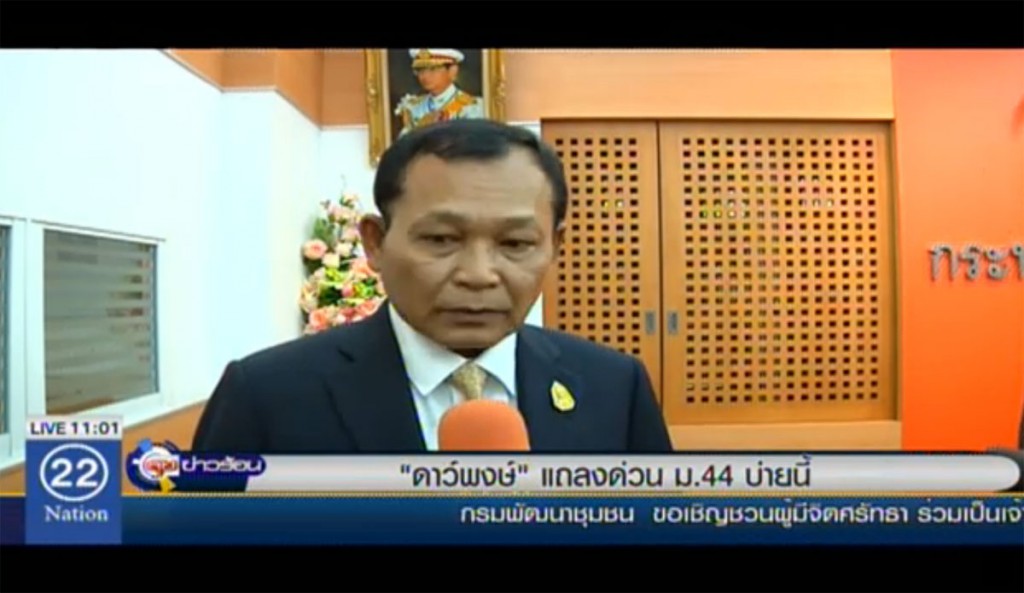 มีรายงานข่าวว่าเวลาบ่ายโมง วันนี้ พล.อ.ดาว์พงษ์(ดา-พง) รัตนสุวรรณ รัฐมนตรีว่าการกระทรวงศึกษาธิการ จะแถลงข่าวเพื่อชี้แจงในประเด็น คสช.ใช้มาตรา 44 ในการขับเคลื่อนปฏิรูปการศึกษาและการบริหารราชการ ศธ.ในภูมิภาค ที่ห้องประชุมสำนักงานคณะกรรมการการอาชีวศึกษา