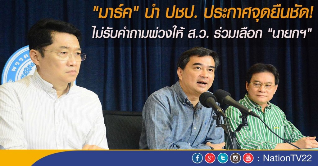 นายอภิสิทธิ์ เวชชาชีวะ หัวหน้าพรรคประชาธิปัตย์ ร่วมกับ นายจุรินทร์ ลักษณวิศิษฏ์ และนายองอาจ คล้ามไพบูลย์ รองหัวหน้าพรรคประชาธิปัตย์ แถลงจุดยืนของพรรคประชาธิปัตย์เกี่ยวกับร่างรัฐธรรมนูญและคำถามพ่วงที่ระบุให้ส.ว.ร่วมเลือกนายกรัฐมนตรี ซึ่งกำลังจะเข้าสู่การทำประชามติ ว่า พรรคมีจุดยืน 3 กรณีคือ 1.กระบวนการจัดทำประชามติร่างรัฐธรรมนูญที่มีการตรากฎหมายขึ้นโดยผ่านความเห็นชอบของสนช.สัปดาห์ที่แล้ว 2.จุดยืนของพรรคต่อคำถามพ่วง และ 3.ร่างรัฐธรรมนูญที่กำลังจะมีการทำประชามติ