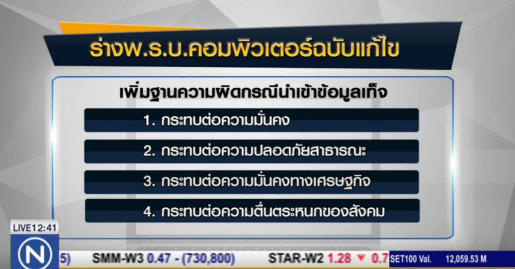 การประชุมสภานิติบัญญัติแห่งชาติ หรือ สนช. วันนี้ มีวาระที่น่าสนใจ คือการพิจารณา ร่าง พ.ร.บ.ว่าด้วยการกระทำความผิดเกี่ยวกับคอมพิวเตอร์ ซึ่งเป็นฉบับที่แก้ไขเนื้อหาบางส่วน จากร่างเดิมที่มีอยู่แล้วในฉบับ 2550