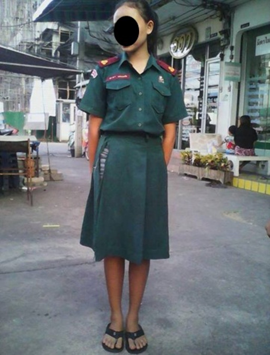 ในวันที่เด็กแต่งชุดเนตรนารีไปเรียน ก็ถูกครูชื่อ นส.ศศิธร (ขอสงวนนามสกุล) บอกว่า "กระโปรงตัวนี้สั้นไป" และครูก็ฉีกกระโปรงของเด็กทันทีภาพที่เห็น ทำให้มีการติติงว่าคุณครูทำเกินเหตุหรือไม่ เพราะดูแล้วกระโปรงก็ไม่ได้สั้นจนน่าเกลียด เพราะยังยาวคลุมเข่า และจากสภาพที่ซีดก็แสดงว่าไม่ได้ซื้อใหม่ จึงเข้าใจว่าครอบครัวของเด็กอาจจะซื้อไว้เผื่อเด้กหญิงคนนี้จะสูงขึ้น และปีนี้เรียนม. 3 ซึ่งจะเป็นปีที่ใช้ชุดนี้อีกปี จึงไม่ได้ซื้อใหม่